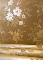 1960s Vintage Sanderson Wallpaper Rolls - Gold Flowers Vinyl MCM Retro - (Set of 3 and Single Rolls)