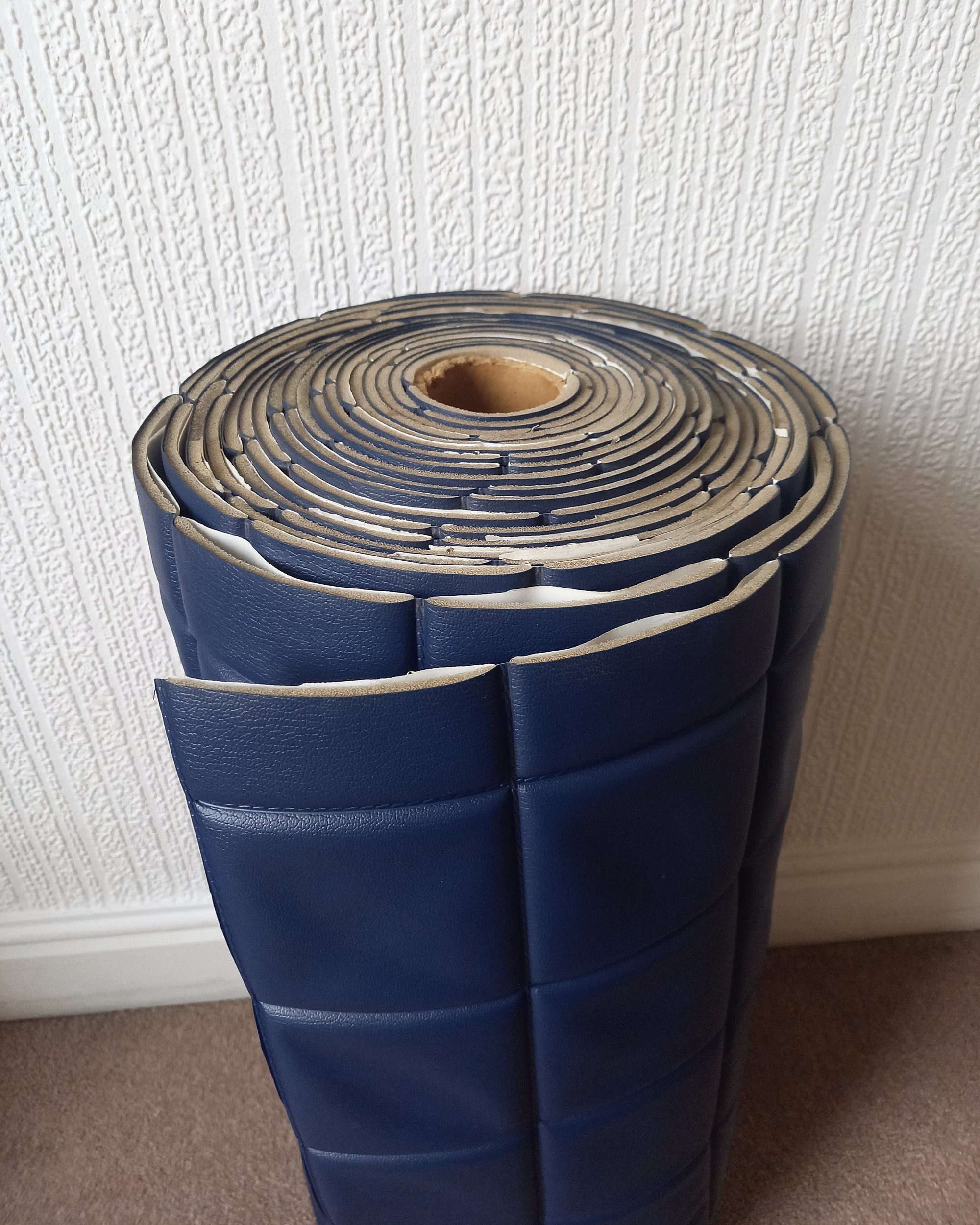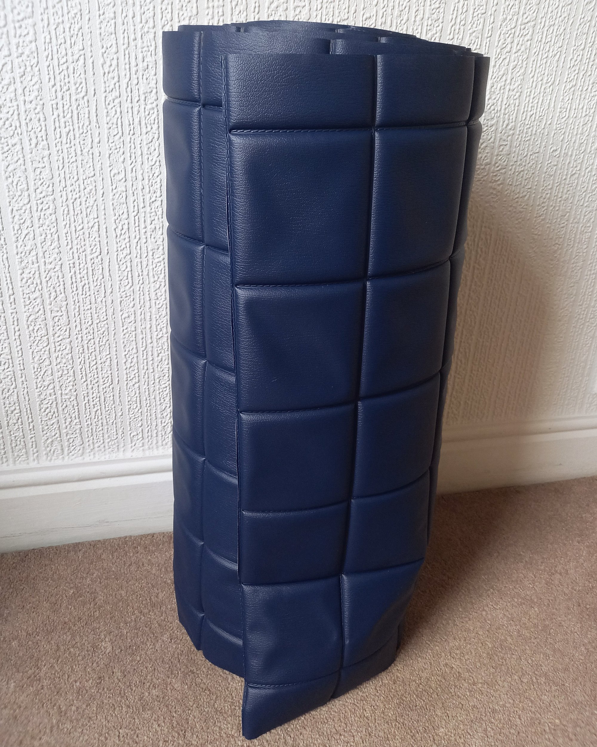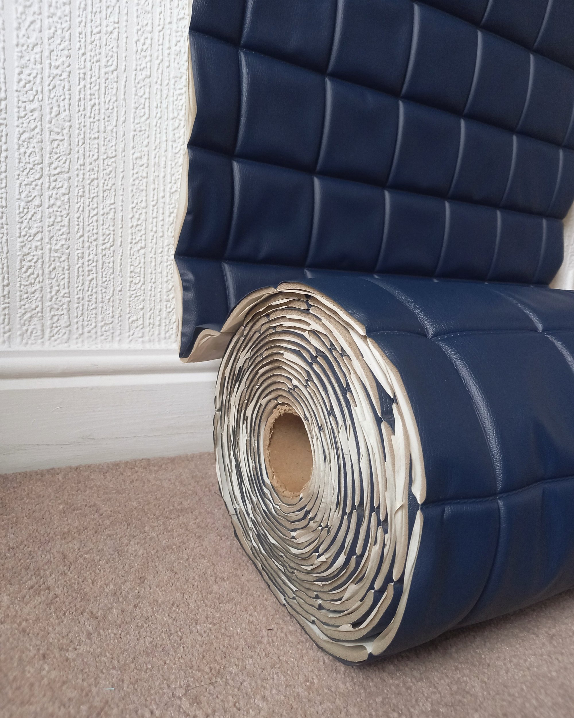 1970s Vintage Padded Wallcovering - Navy Blue Quilted Cushioned Vinyl Caravan - (Single Roll)