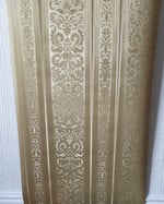 Elegant 1970s gold striped wallpaper — rich vintage opulence that brings warm mid-century glamour to walls and hallways.